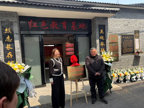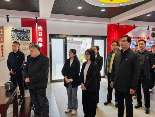随后,全体与会人员步行前往束和顺纪念馆举行祭扫缅怀活动。在纪念馆前,全体人员向革命先烈敬献鲜花、行鞠躬礼,在庄重肃穆的仪式中向革命先烈表达了崇敬与缅怀。在纪念馆的参观中,学院一行在现场看到,展览不仅呈现了令人肃然起敬的革命先烈事迹,还借助AI技术重现了英雄的音容笑貌。通过沉浸式体验,参观者深切感受到革命先辈于平凡中见伟大的崇高精神,以及他们无私奉献的无产阶级革命信仰。