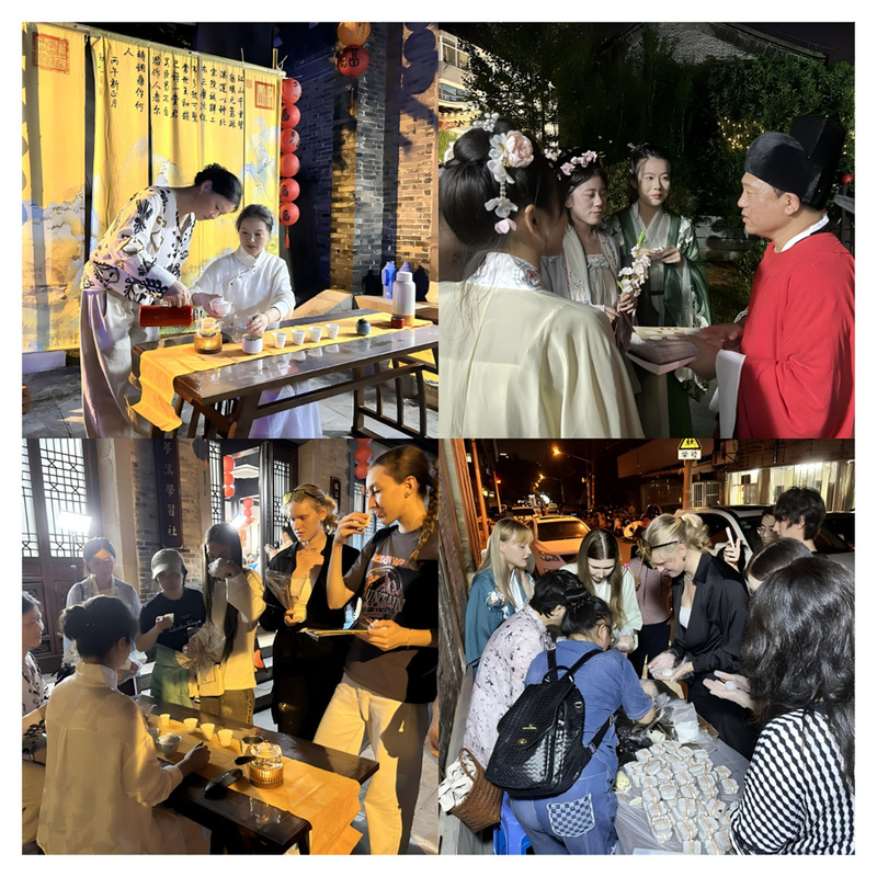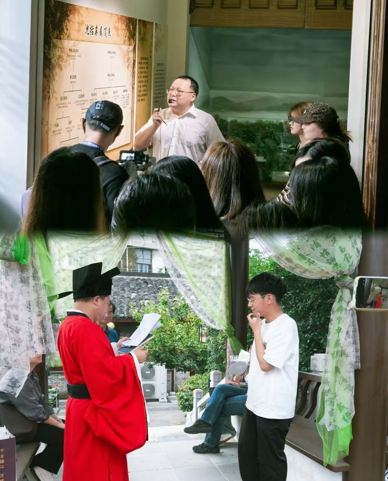 沉浸体验部分,大家身着汉服,在浓厚的宋代文化氛围中互动。同时,还邀请外国友人参与表演,如朗诵翻译版《笔谈》片段,增添了活动的国际色彩。文娱表演穿插进行,为现场更添欢乐。
