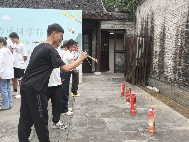 活字印刷体验区,同学们挑选活字、刷油墨、印纸张,获作品后还能盖 “笔谈垂范” 章。宋代射礼体验区,社教员解读《笔谈》“弓有六善” 原文、展示筋角弓,指导同学们射箭,让古代科技与工艺在亲手实践中焕发新生,激发了参与者对传统科学文化的浓厚兴趣。