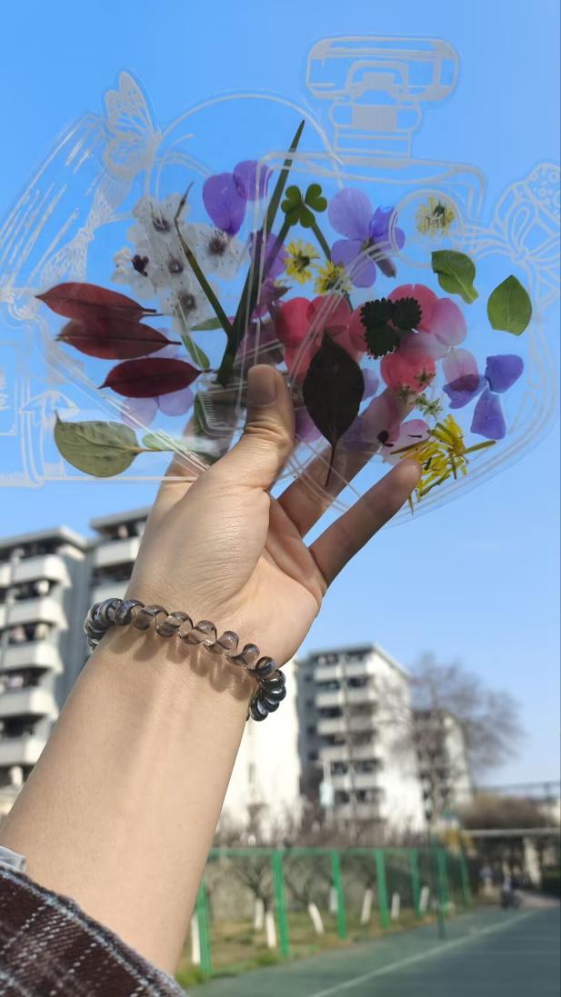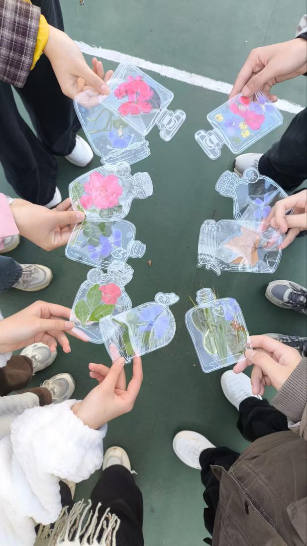 线下“瓶子里的春天”手工活动于3月21日下午举行。同学们漫步校园收集花朵与枝叶,在透明瓶型书签上封存自然元素,制作专属“瓶中时光”,感受自然与艺术的治愈力量。活动严格执行签到制度,作品后续展示后可由参与者留存。
